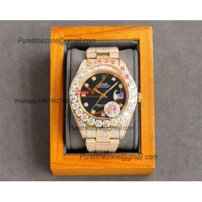 Home Rolex Iced Out Datejust A23J Automatic Mens Watch Best Edition RRF YG Big Diamond Beze Black Dial Diamonds 904L Steel Bracelet