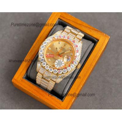 Home Rolex Iced Out Datejust A23J Automatic Mens Watch Best Edition RRF YG Big Diamond Beze Gold Dial Diamonds 904L Steel Bracelet