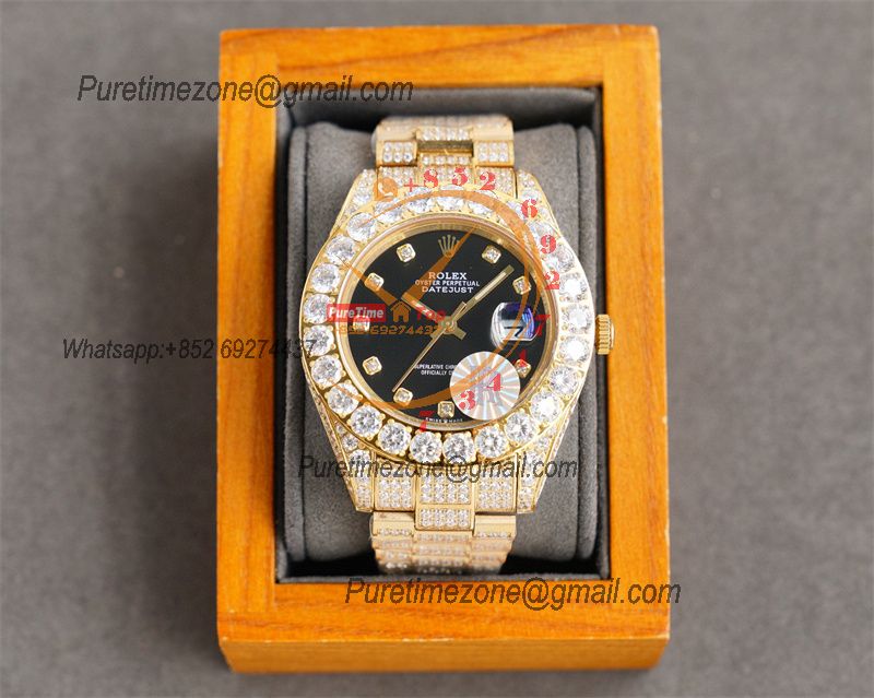 Datejust A2824 Automatic Mens Watch 41 Best Edition RRF Black Roman Paved Diamonds Fully Iced Out 904L Steel Bracelet