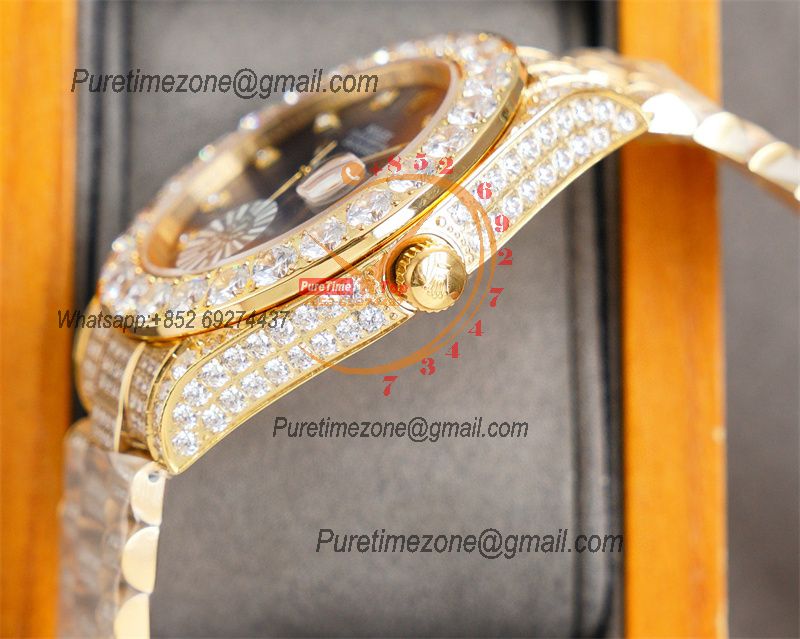 Home Rolex Iced Out Datejust A23J Automatic Mens Watch Best Edition RRF YG Big Diamond Beze Gray Dial Diamonds 904L Steel Bracelet