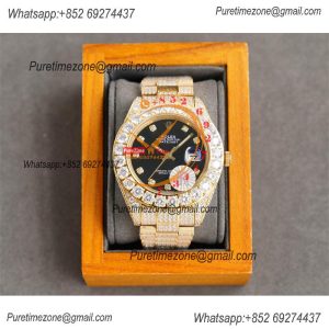 Datejust A2824 Automatic Mens Watch 41 Best Edition RRF Black Roman Paved Diamonds Fully Iced Out 904L Steel Bracelet