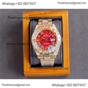 Datejust A2824 Automatic Mens Watch 41 Best Edition RRF Red Arabic Paved Diamonds Fully Iced Out 904L Steel Bracelet
