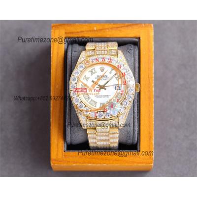 Home Rolex Iced Out Datejust A23J Automatic Mens Watch Best Edition RRF YG Big Diamond Beze White Roman DM Dial Diamonds 904L Steel Bracelet