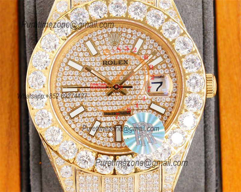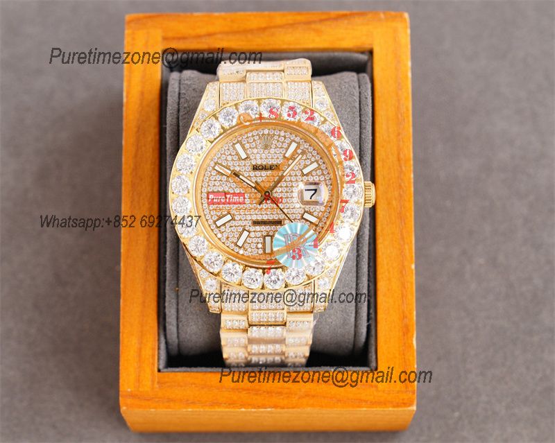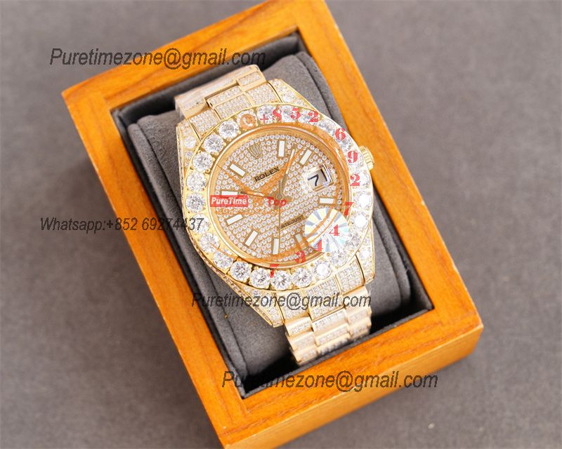 Home Rolex Iced Out Datejust A23J Automatic Mens Watch Best Edition RRF YG Paved Diamond Stick Dial Diamonds Ice Out 904L Steel Bracelet