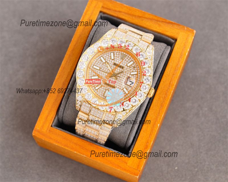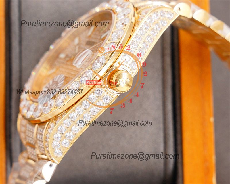 Datejust A2824 Automatic Mens Watch 41 Best Edition RRF Yellow Arabic Paved Diamonds Fully Iced Out 904L Steel Bracelet