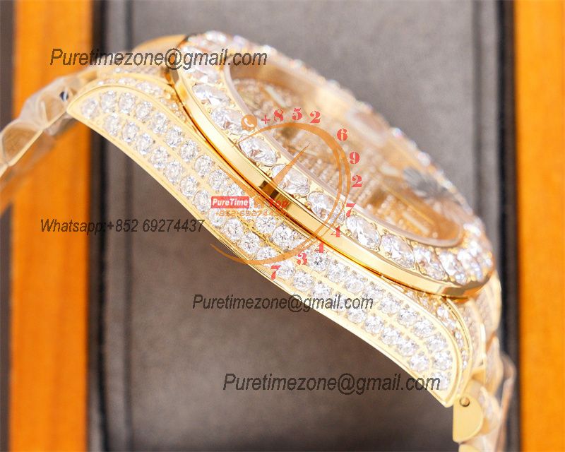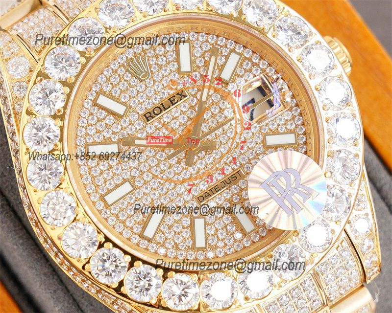 Datejust A2824 Automatic Mens Watch 41 Best Edition RRF Yellow Stick Diamonds Fully Iced Out 904L Steel Bracelet