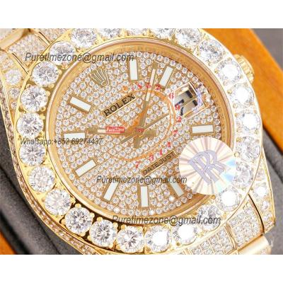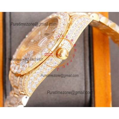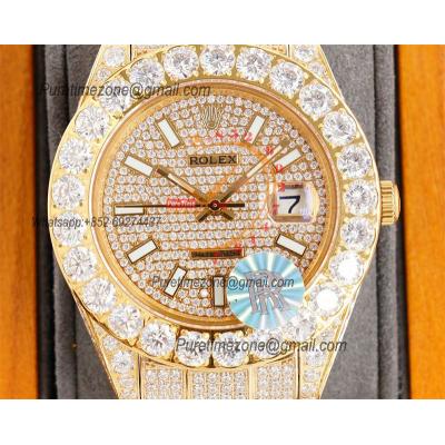Home Rolex Iced Out Datejust A23J Automatic Mens Watch Best Edition RRF YG Paved Diamond Stick Dial Diamonds Ice Out 904L Steel Bracelet