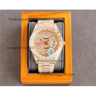 Datejust A2824 Automatic Mens Watch 41 Best Edition RRF Yellow Stick Diamonds Fully Iced Out 904L Steel Bracelet