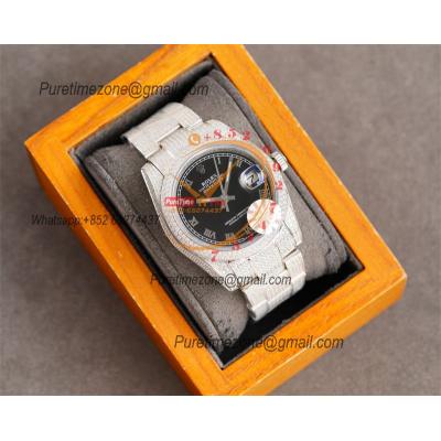 Datejust A2836 Automatic Mens Watch 41 Best Edition RRF Black Arabic Paved Diamond Fully Iced Out 904L Steel Bracelet