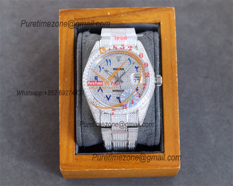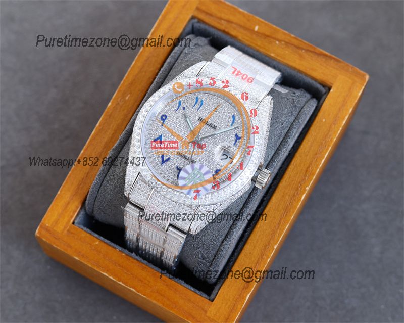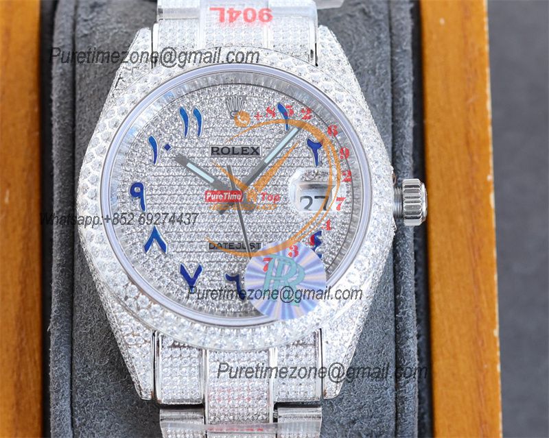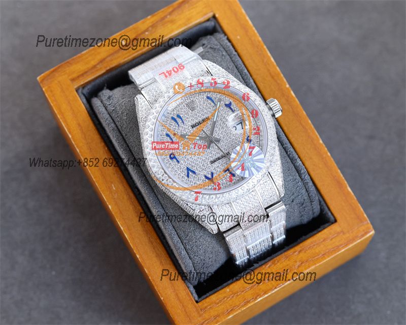 Datejust A2836 Automatic Mens Watch 41 Best Edition RRF Colors Arabic Paved Diamond Fully Iced Out 904L Steel Bracelet