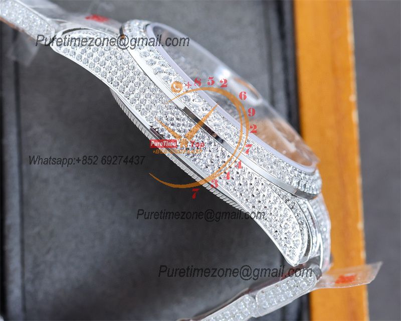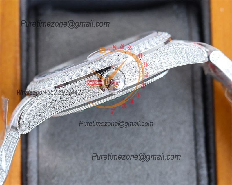 Datejust A2824 Automatic Mens Watch 41 Best Edition RRF Silver Diamond Paved Diamonds Fully Iced Out 904L Steel Bracelet