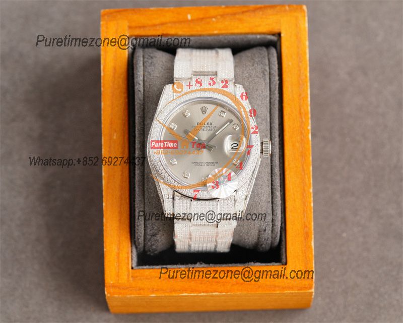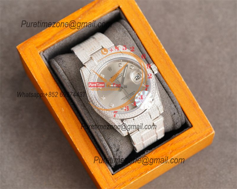 Datejust A2824 Automatic Mens Watch 41 Best Edition RRF Gray Diamond Paved Diamonds Fully Iced Out 904L Steel Bracelet