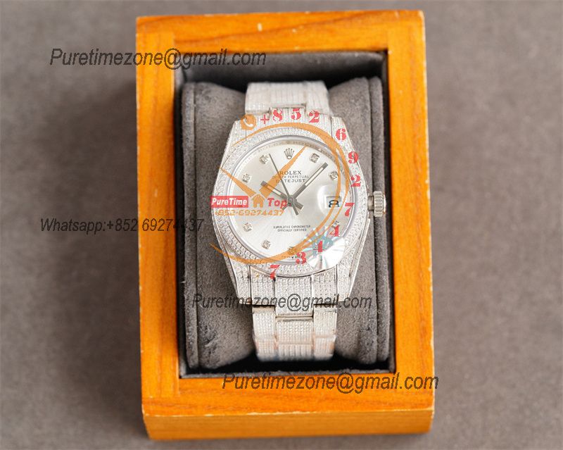Home Rolex Iced Out Datejust A2824 Automatic Mens Watch 41 Best Edition RRF Silver Diamond Paved Diamonds Fully Iced Out 904L Steel Bracelet