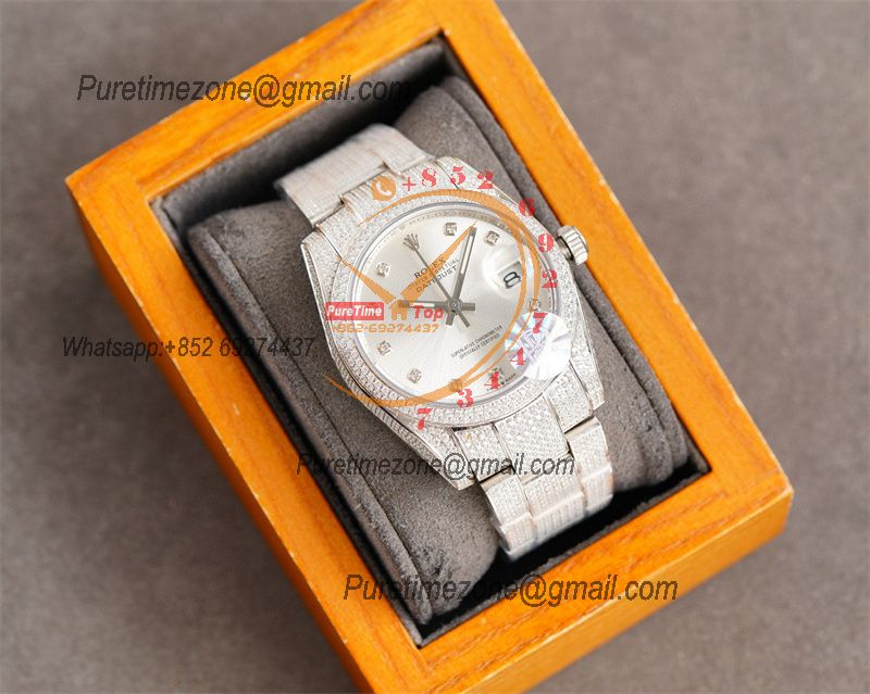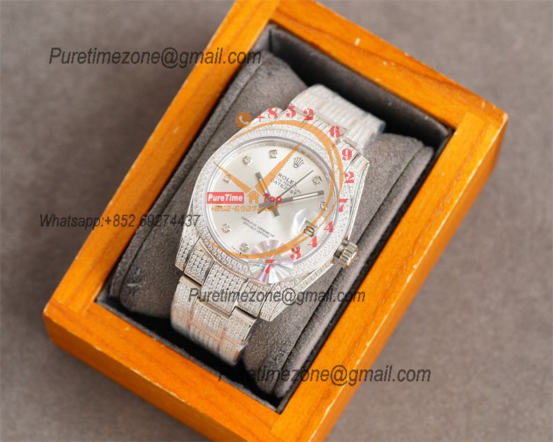 Datejust A2824 Automatic Mens Watch 41 Best Edition RRF Silver Diamond Paved Diamonds Fully Iced Out 904L Steel Bracelet