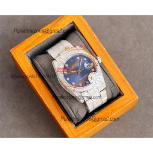 Datejust Miyota Automatic Ladies Watch 36 Best Edition RRF Blue Arabic Paved Diamond Fully Iced Out 904L Steel Bracelet