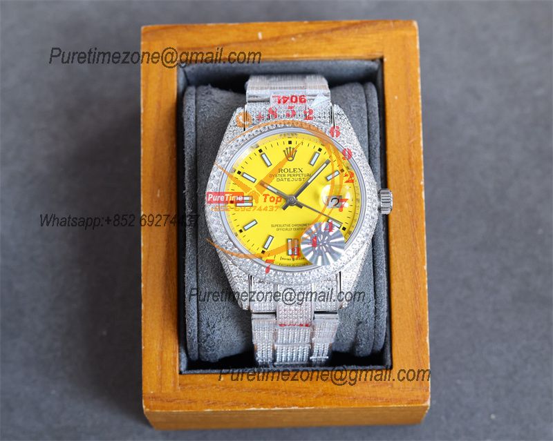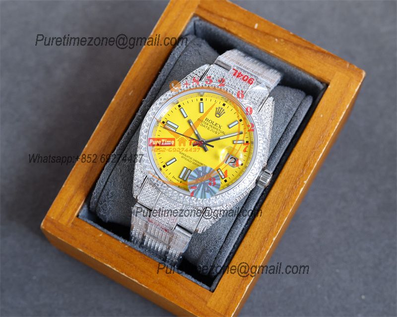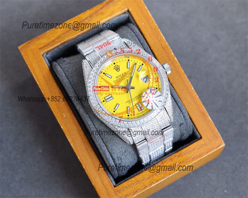 Datejust A2824 Automatic Mens Watch 41 Best Edition RRF Yellow Arabic Paved Diamonds Fully Iced Out 904L Steel Bracelet $960.00 $800.00