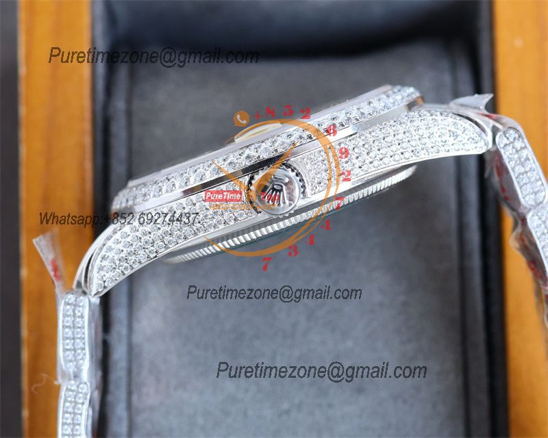 Datejust Miyota Automatic Ladies Watch 36 Best Edition RRF Green Arabic Paved Diamond Fully Iced Out 904L Steel Bracelet