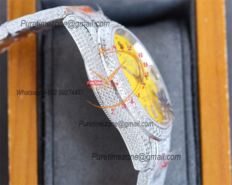 Datejust A2824 Automatic Mens Watch 41 Best Edition RRF Yellow Arabic Paved Diamonds Fully Iced Out 904L Steel Bracelet