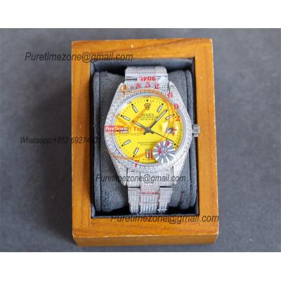 Datejust A2824 Automatic Mens Watch 41 Best Edition RRF Yellow Arabic Paved Diamonds Fully Iced Out 904L Steel Bracelet $960.00 $800.00