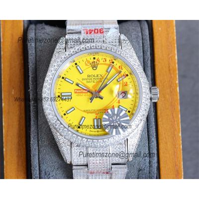 Datejust A2824 Automatic Mens Watch 41 Best Edition RRF Yellow Arabic Paved Diamonds Fully Iced Out 904L Steel Bracelet