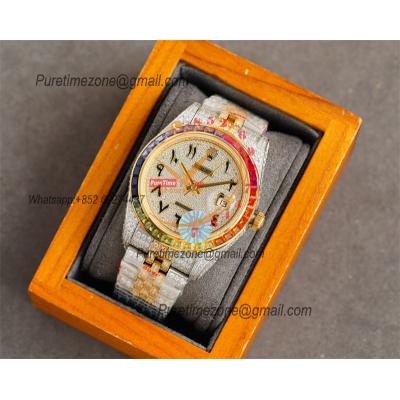 Datejust A2824 Automatic Mens Watch Best Edition RRF 41 TTYG Rainbow Diamond Bezel Color Arabic Dial 904L Steel Bracelet $900.00 $750.00