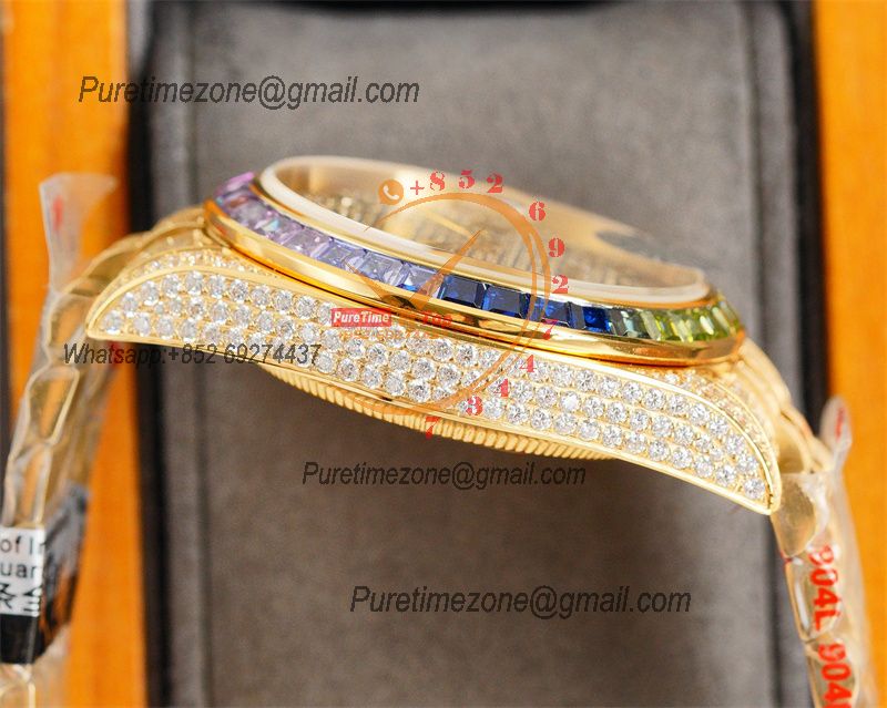Datejust A2824 Automatic Mens Watch Best Edition RRF 41 TTYG Rainbow Diamond Bezel Color Arabic Dial 904L Steel Bracelet $900.00 $750.00