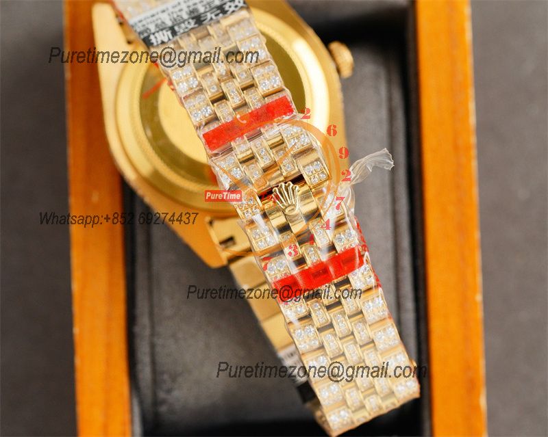 Datejust A2824 Automatic Mens Watch 41 Best Edition RRF Yellow Arabic Paved Diamonds Fully Iced Out 904L Steel Bracelet