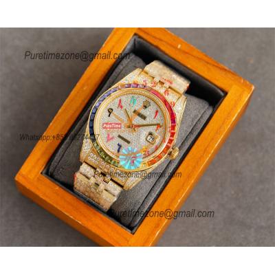 Home Rolex Iced Out Datejust A2824 Automatic Mens Watch Best Edition RRF 41 YG Rainbow Diamonds Bezel Colors Arabic Dial 904L Steel Bracelet