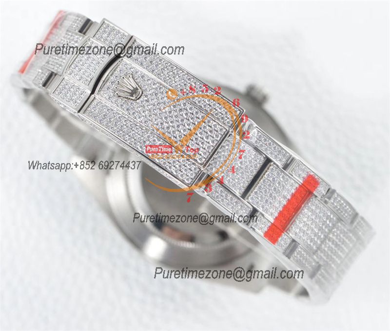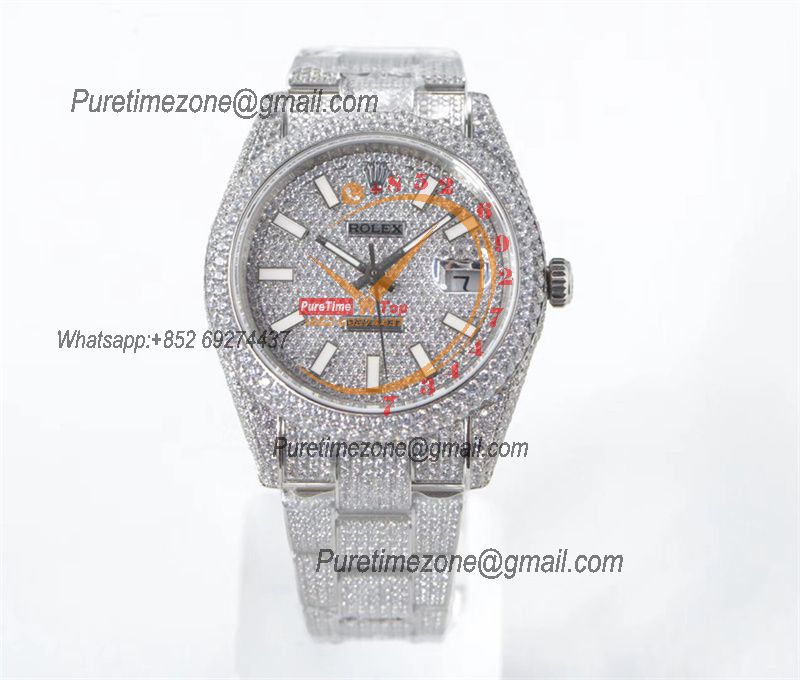 Datejust A2824 Automatic Mens Watch 41 Best Edition RRF Red Arabic Paved Diamonds Fully Iced Out 904L Steel Bracelet