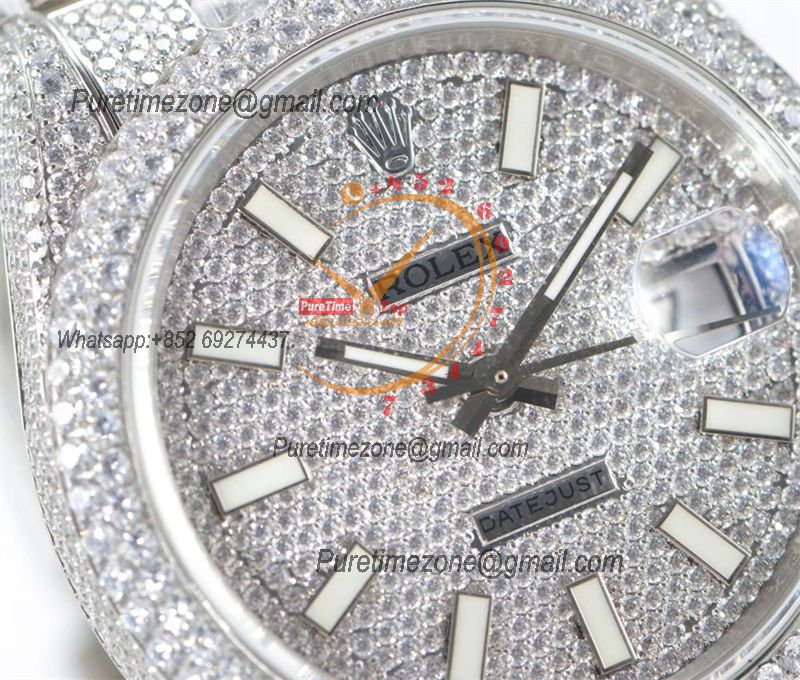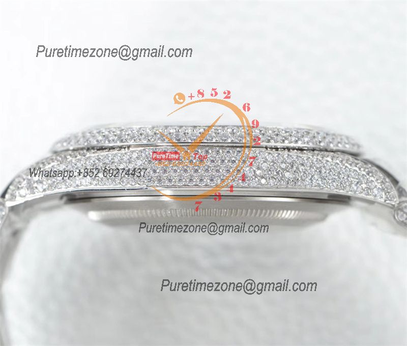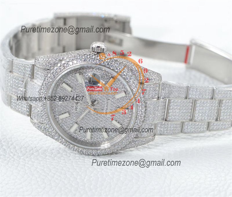Datejust A2824 Automatic Mens Watch 41 Best Edition RRF Silver Diamond Paved Diamonds Fully Iced Out 904L Steel Bracelet