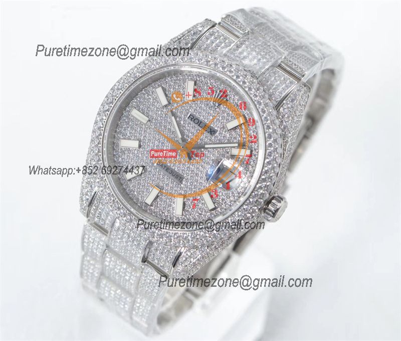 Datejust A2824 Automatic Mens Watch Best Edition TWF Paved Diaomond Case Stick Dial Fully Ice Out 904L Steel Bracelet