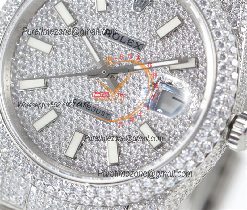 Datejust A2824 Automatic Mens Watch 41 Best Edition RRF Silver Arabic Paved Diamonds Fully Iced Out 904L Steel Bracelet