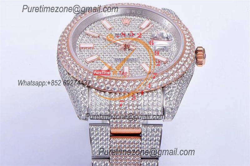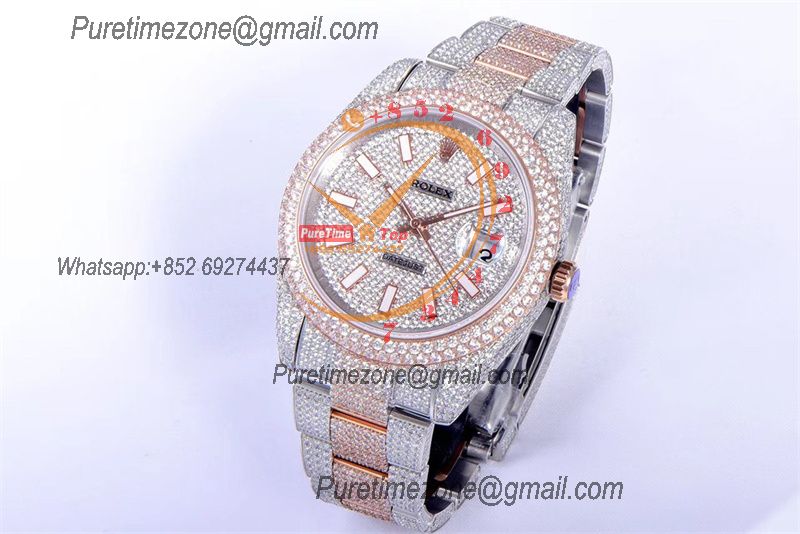 Datejust A2824 Automatic Mens Watch 41 Best Edition RRF Red Arabic Paved Diamonds Fully Iced Out 904L Steel Bracelet