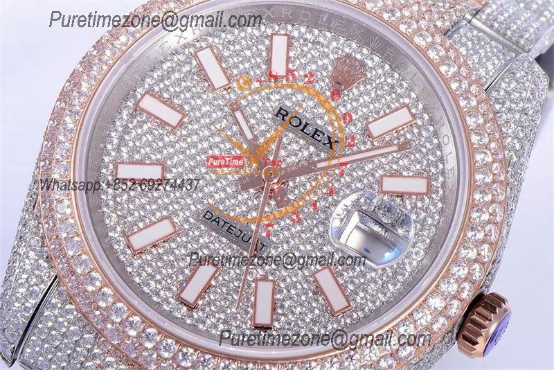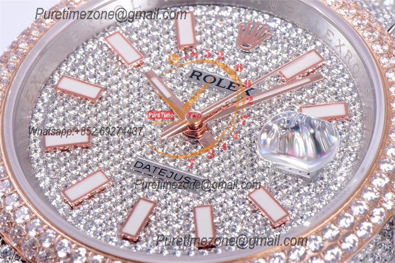 Home Rolex Iced Out Datejust A2824 Automatic Mens Watch Best Edition TWF TTRG Paved Diaomond Stick Dial Fully Ice Out 904L Steel Bracelet