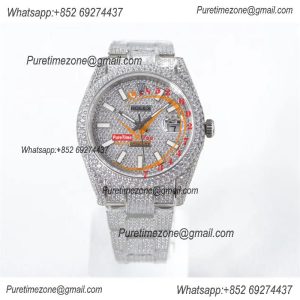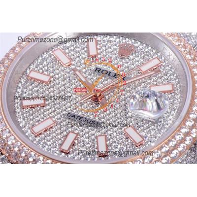Datejust A2824 Automatic Mens Watch Best Edition TWF TTRG Paved Diaomond Stick Dial Fully Ice Out 904L Steel Bracelet
