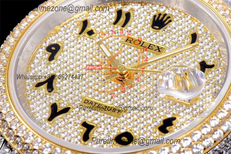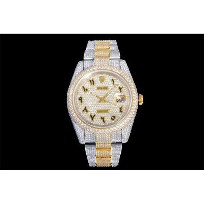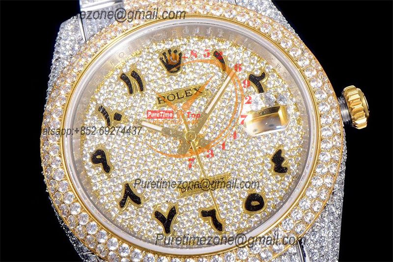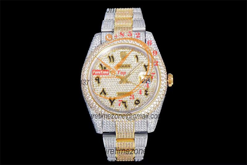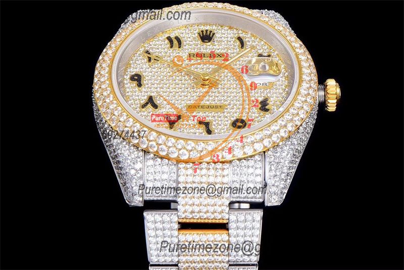 Datejust A2824 Automatic Mens Watch 41 Best Edition RRF Yellow Arabic Paved Diamonds Fully Iced Out 904L Steel Bracelet