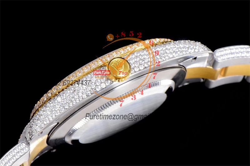 Home Rolex Iced Out Datejust A2824 Automatic Mens Watch Best Edition TWF TTYG Paved Diaomond Black Arabic Dial Ice Out 904L Steel Bracelet