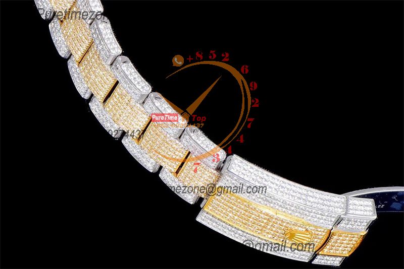 Datejust A2824 Automatic Mens Watch 41 Best Edition RRF Blue Roman Paved Diamonds Fully Iced Out 904L Steel Bracelet