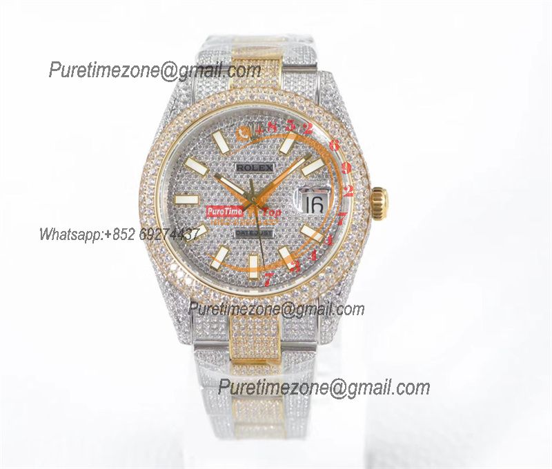 Datejust A2836 Automatic Mens Watch 41 Best Edition RRF Red Arabic Paved Diamond Fully Iced Out 904L Steel Bracelet