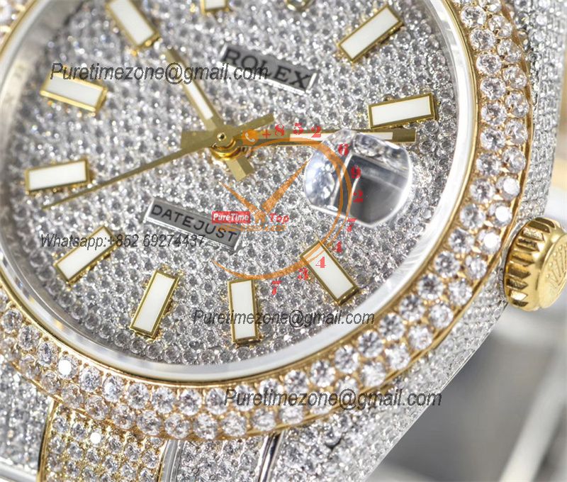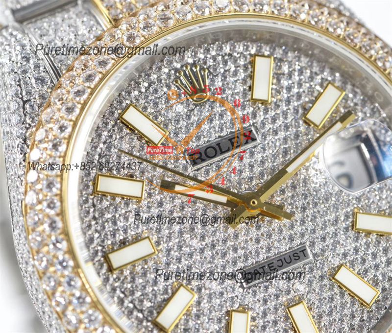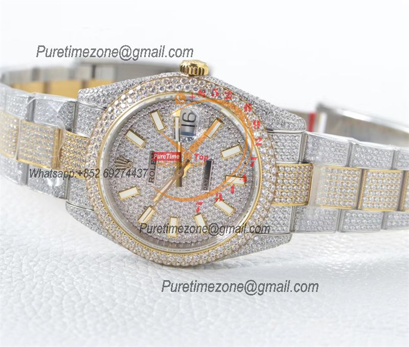 Datejust A2824 Automatic Mens Watch 41 Best Edition RRF Yellow Stick Diamonds Fully Iced Out 904L Steel Bracelet