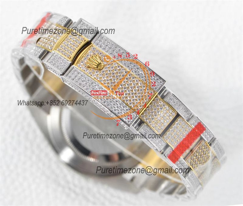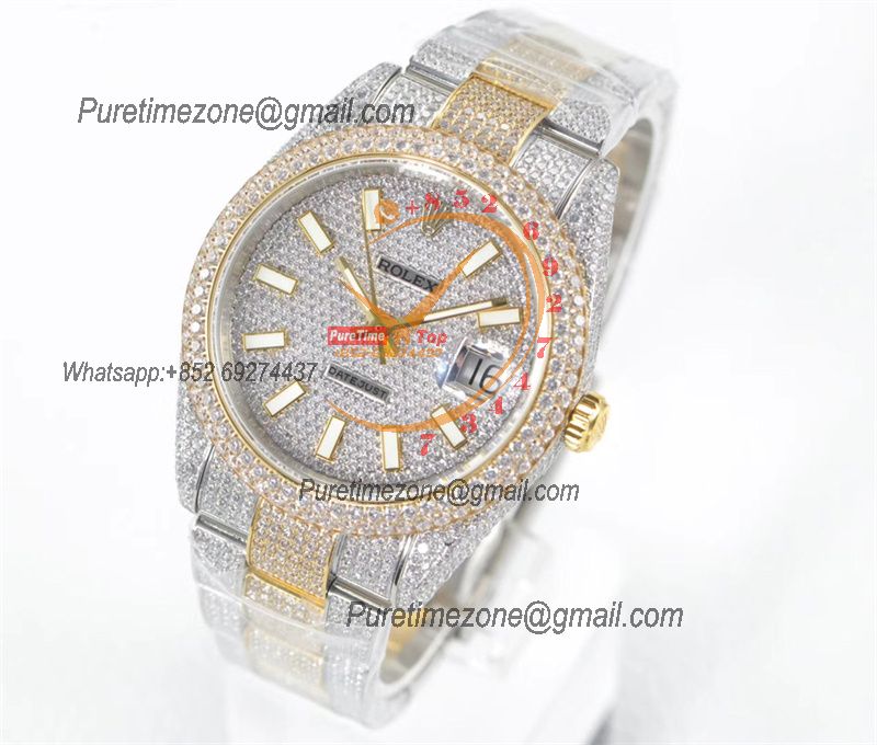 Datejust A2824 Automatic Mens Watch Best Edition TWF TTYG Paved Diaomond Stick Dial Fully Ice Out 904L Steel Bracelet