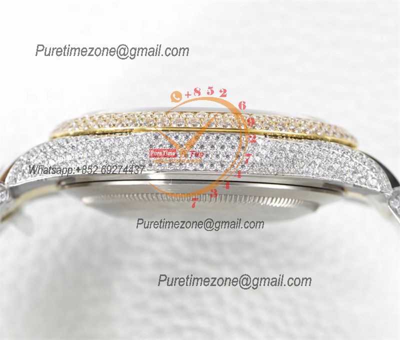 Datejust A2824 Automatic Mens Watch 41 Best Edition RRF Yellow Arabic Paved Diamonds Fully Iced Out 904L Steel Bracelet