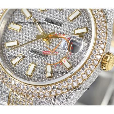 Datejust A2824 Automatic Mens Watch 41 Best Edition RRF Yellow Stick Diamonds Fully Iced Out 904L Steel Bracelet