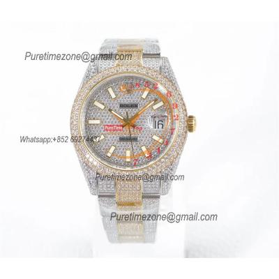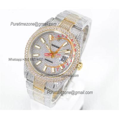 Datejust A2824 Automatic Mens Watch Best Edition TWF TTYG Paved Diaomond Stick Dial Fully Ice Out 904L Steel Bracelet