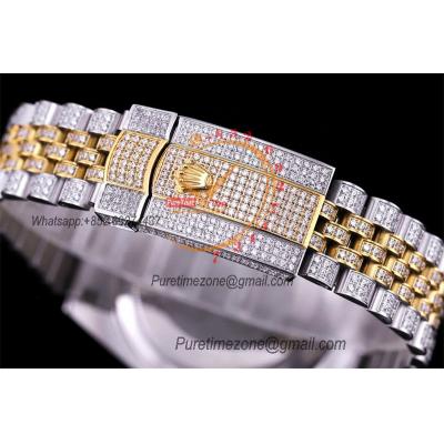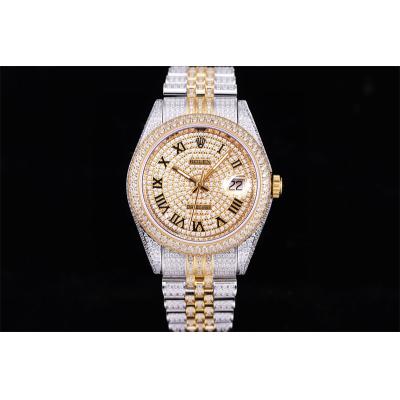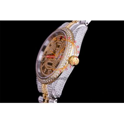 Home Rolex Iced Out Datejust A2824 Automatic Mens Watch Best Edition ZYF TTYG Paved Diaomond Black Roman Dial Ice Out 904L Steel Bracelet