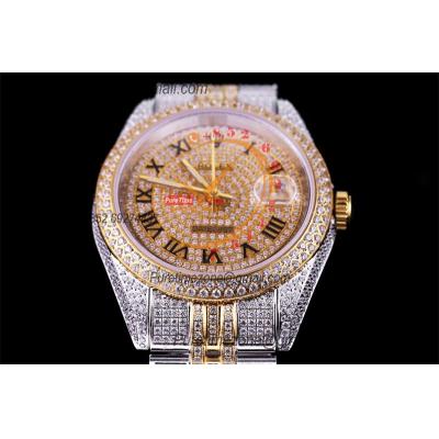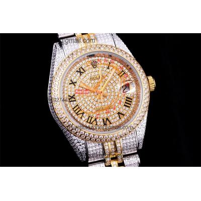 Datejust A2824 Automatic Mens Watch Best Edition ZYF TTYG Paved Diaomond Color Roman Dial Ice Out 904L Steel Bracelet $960.00 $800.00