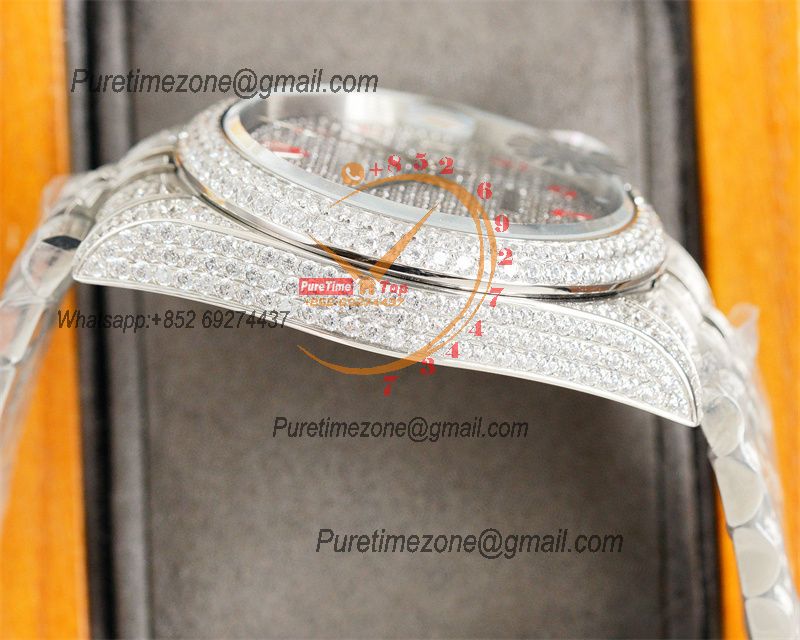 Datejust A2836 Automatic Mens Watch 41 Best Edition RRF Red Arabic Paved Diamond Fully Iced Out 904L Steel Bracelet $960.00 $800.00