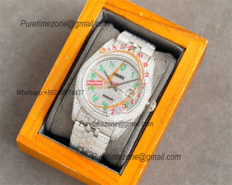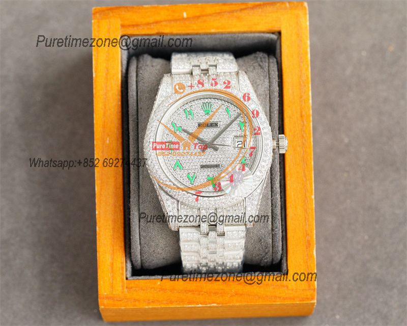 Datejust A2836 Automatic Mens Watch 41 Best Edition RRF Colors Arabic Paved Diamond Fully Iced Out 904L Steel Bracelet $960.00 $800.00