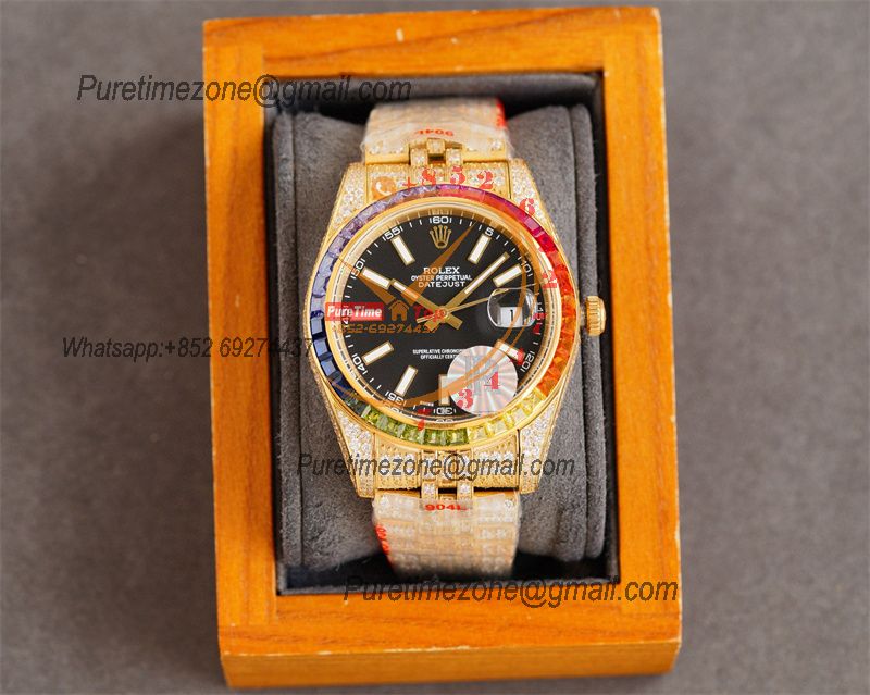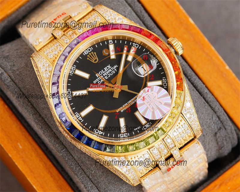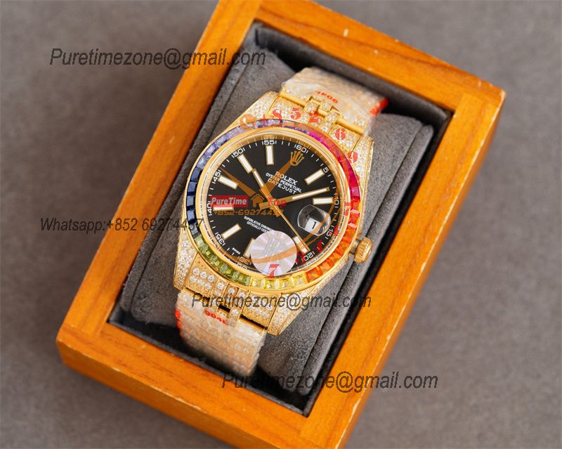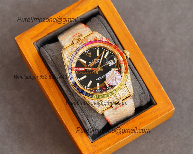 Datejust A2836 Automatic Mens Watch 41 Best Edition RRF Colors Arabic Paved Diamond Fully Iced Out 904L Steel Bracelet
