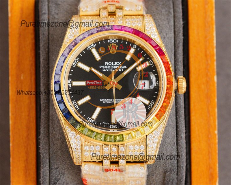 Datejust A2824 Automatic Mens Watch 41 Best Edition RRF Yellow Stick Diamonds Fully Iced Out 904L Steel Bracelet